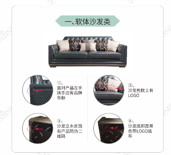 (3)沙發(fā)立水反面有產(chǎn)品防偽碼;