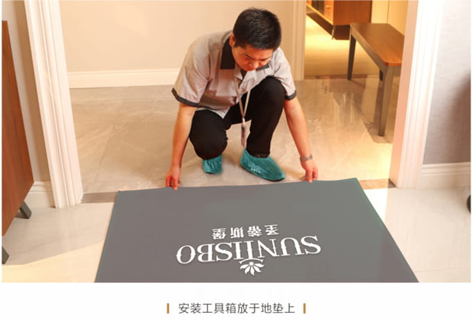 1、征得客戶同意后在客戶指定地點進行產品安裝,安裝過程中將提前準備好的小地毯/地墊放置于地上,安裝工具箱放于地墊上,不要在家具或地板上亂放,以免散落面板或地面上造成磨損。