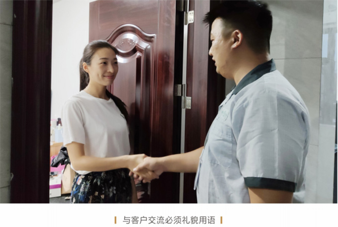 必須按照客戶約定,至少提前5分鐘上門,見到客戶時需自我介紹,并出示上崗證和名片,在進入顧客家前應穿上自備的鞋套。征得客戶同意后開始維修,嚴禁亂收費。