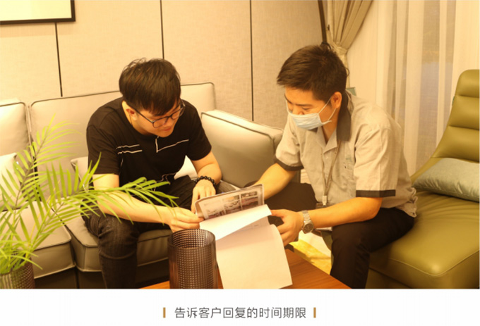 上門現場查看情況后,確定是補件或維修或返廠,并告知客戶大概需要多久時間能夠解決完問題并真誠地表示歉意。